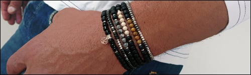 Bracelet homme en perles argent et rocaille.